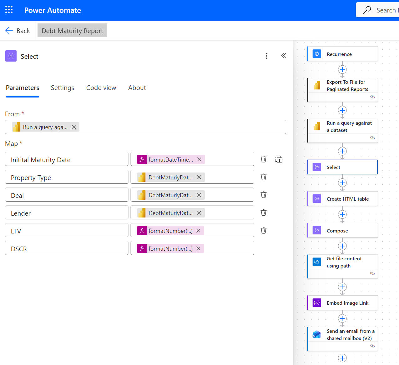 6) Sent weekly portfolio risk emails via Power Automate.Core conclusions:1) Portfolio leverage is generally moderate, though risk is unevenly distributed across a subset of higher-leverage facilities.2) Cash-flow coverage varies by property type, with operating assets showing stronger coverage than development properties.3) Risk is concentrated around upcoming maturities and extensions, where refinancing and execution risk is highest.